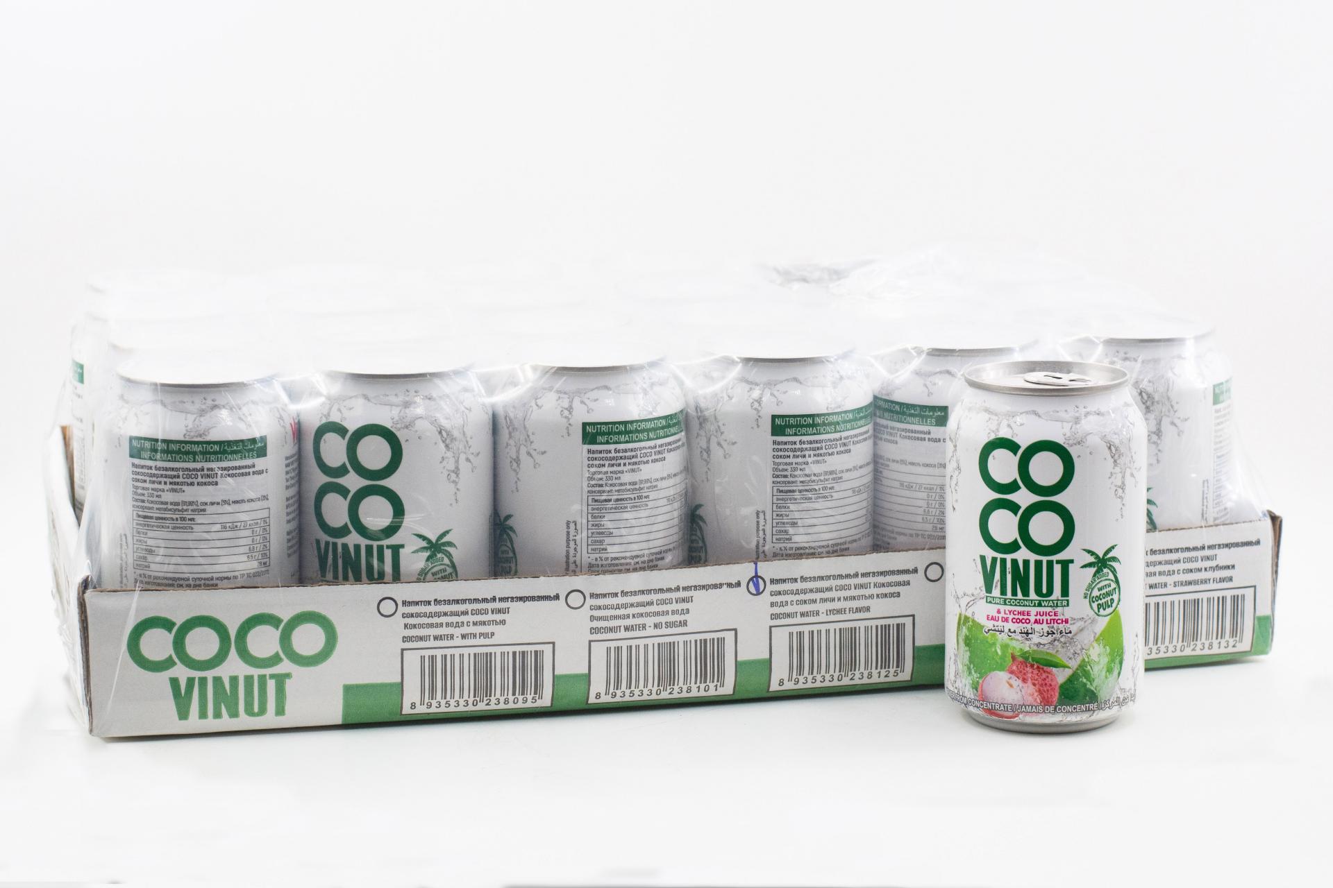 COCO Vinut Кокосовая вода с соком личи и мякотью кокоса 330мл ж/б66,45 руб. за штуку (в упак. 24 шт.) |